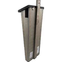 Dieses schmale Vogelhaus ist aus vergrautem Holz gefertigt und hat ein schwarzes Holzdach. Aufgrund seiner Größe und Form eignet sich das Haus besonders gut für den Baumkriecher und den Gartenbaumläufer. Der Gartenbaumläufer ist dafür bekannt, die Einflugöffnung zu verkleinern, indem er mit Lehm und Speichel mauert. Auf diese Weise schafft er die am besten geeignete Einflugöffnung. Durch die zunehmende Verstädterung wird es für den Baumkriecher und den Gartenbaumläufer immer schwieriger, einen geeigneten Brutplatz zu finden. Durch das Aufhängen dieses Vogelhauses helfen Sie den Vögeln, einen geeigneten Brutplatz zu finden. Das Vogelhaus hat Abmessungen von etwa 10 x 14 x 42 Zentimetern (LxBxH).