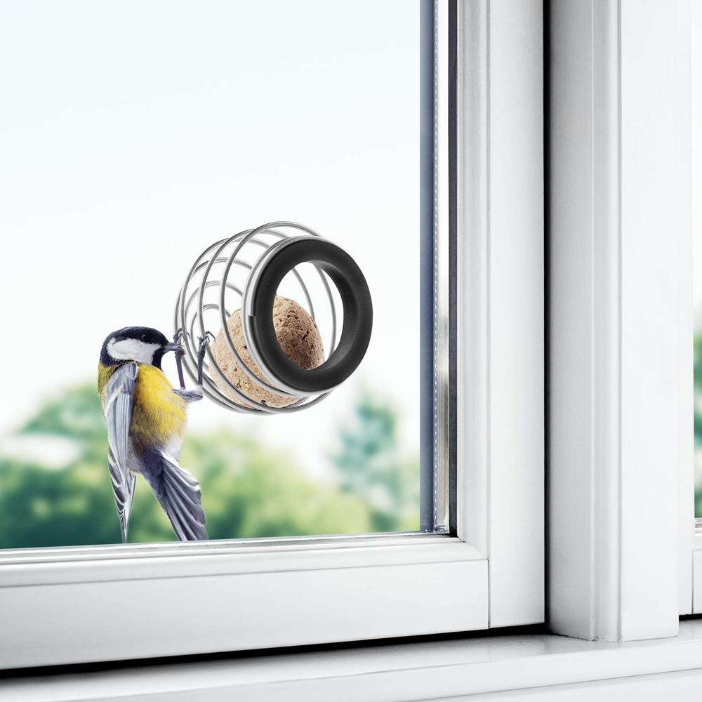 Vögel sind äußerst aktive Tiere, die immer dankbar für zusätzliches Futter sind. Helfen Sie den Vögeln in Ihrem Garten mit diesem schönen Fensterfutterhaus aus Edelstahl. Es hat ein kugelförmiges Design und wird mit dem doppelseitigen Klebestreifen einfach am Fenster befestigt. Die Kugel ist geeignet, um einen Meisenknödel einzulegen, und hat Abmessungen von etwa 9 x 9 x 9 Zentimetern (LxBxH). Sie lässt sich leicht mit einem feuchten Tuch reinigen.
