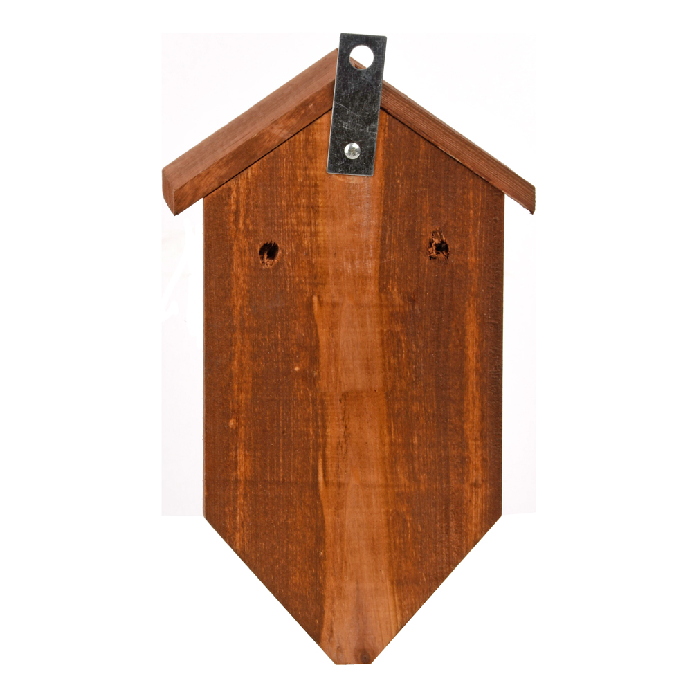 Viele Vögel wählen lieber ein Haus, das an einem geschützten Ort hängt. Denken Sie zum Beispiel an dichte Vegetation oder Efeu. Seien Sie auch vorsichtig bei Regen und voller Sonne. Achten Sie auch darauf, dass die Flugbahn des Hauses frei bleibt. An der Rückseite des Hauses befindet sich eine Metallplatte. Dieses Bild hat eine Aufhängeöse, die das Aufhängen des Hauses erleichtert. Es ist wichtig, ein Nistkasten jährlich zu reinigen. Dieser Nestbeutel hat jedoch keinen Deckel, um den Beutel selbst zu reinigen. Sie können es reinigen, indem Sie das gesamte Haus in Seifenwasser legen und es dann trocknen lassen. Die beste Zeit dafür ist im Herbst.